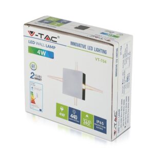 LED Φωτιστικό Τοίχου 4W V-TAC Μαύρο Τετράγωνο Αδιάβροχο IP65 SMD Φυσικό Λευκό 4000Κ – 8212