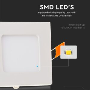 V-Tac VT-307 τετράγωνο χωνευτό πάνελ μίνι LED με ισχύ 3W και τεχνολογία SMD LED. Περιλαμβάνεται driver.