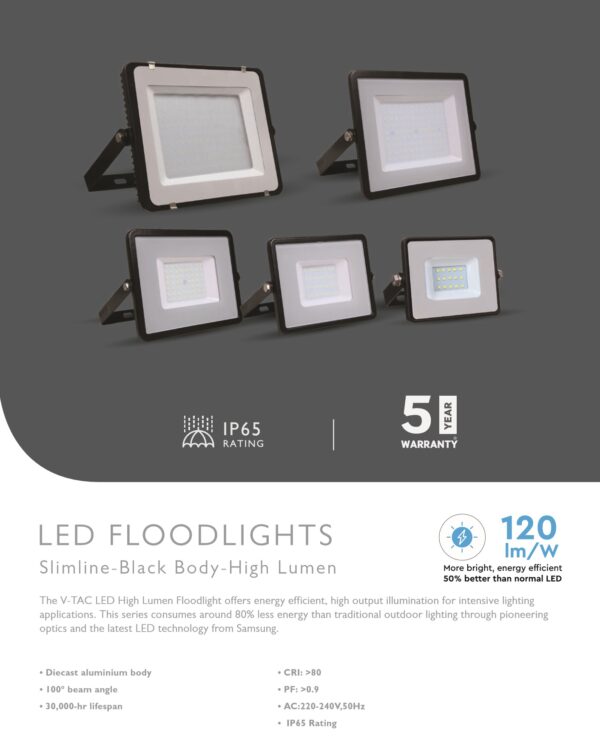 LED Προβολέας 20W V-TAC PRO Samsung Chip Μαύρος 100° 1600lm Λευκός Αδιάβροχος IP65 Ψυχρό Λευκό 6400K - 444