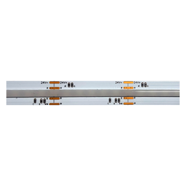 Η RGB+CCT COB LED Strip 24V DC 21W/m 242190RGBCCTC είναι προηγμένη LED ταινία υψηλής πυκνότητας με 840 COB LED ανά μέτρο που προσφέρει ομοιόμορφο, ενιαίο και καθαρό φωτισμό χωρίς “σημεία” φωτός — ιδανική λύση για διακόσμηση εσωτερικών χώρων, φωτισμό επίπλων, ραφιών, κουζίνας, μπαρ, καταστημάτων ή αρχιτεκτονικές λωρίδες φωτισμού.