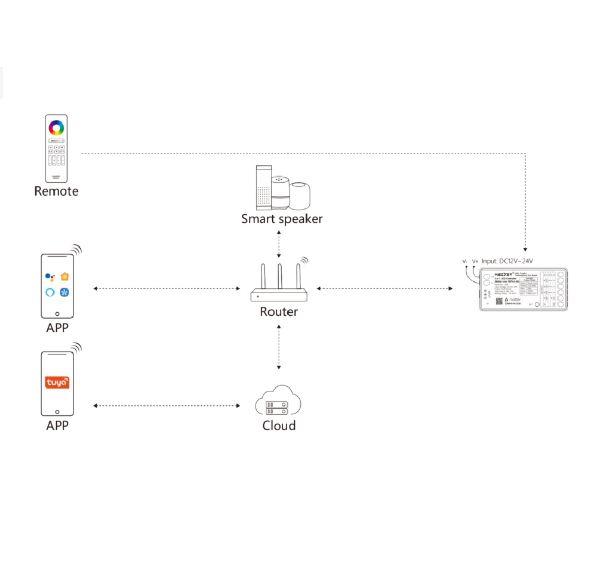 Ο Miboxer αποτελεί έναν προηγμένο 5‑in‑1 LED controller σχεδιασμένο για σύγχρονα smart lighting συστήματα. Πιστοποιημένος με το πρωτόκολλο Matter Over WiFi, προσφέρει ευρεία συμβατότητα με όλες τις μεγάλες πλατφόρμες smart home, όπως Apple HomeKit, Amazon Alexa, Google Home, SmartThings και Tuya Smart.