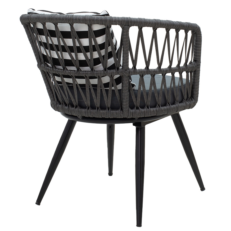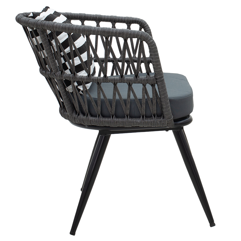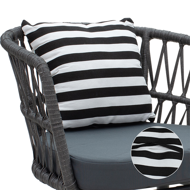 Πολυθρόνα Naoki pakoworld μέταλλο μαύρο-pe γκρι-μαξιλάρι ασπρόμαυρο – 140-000044