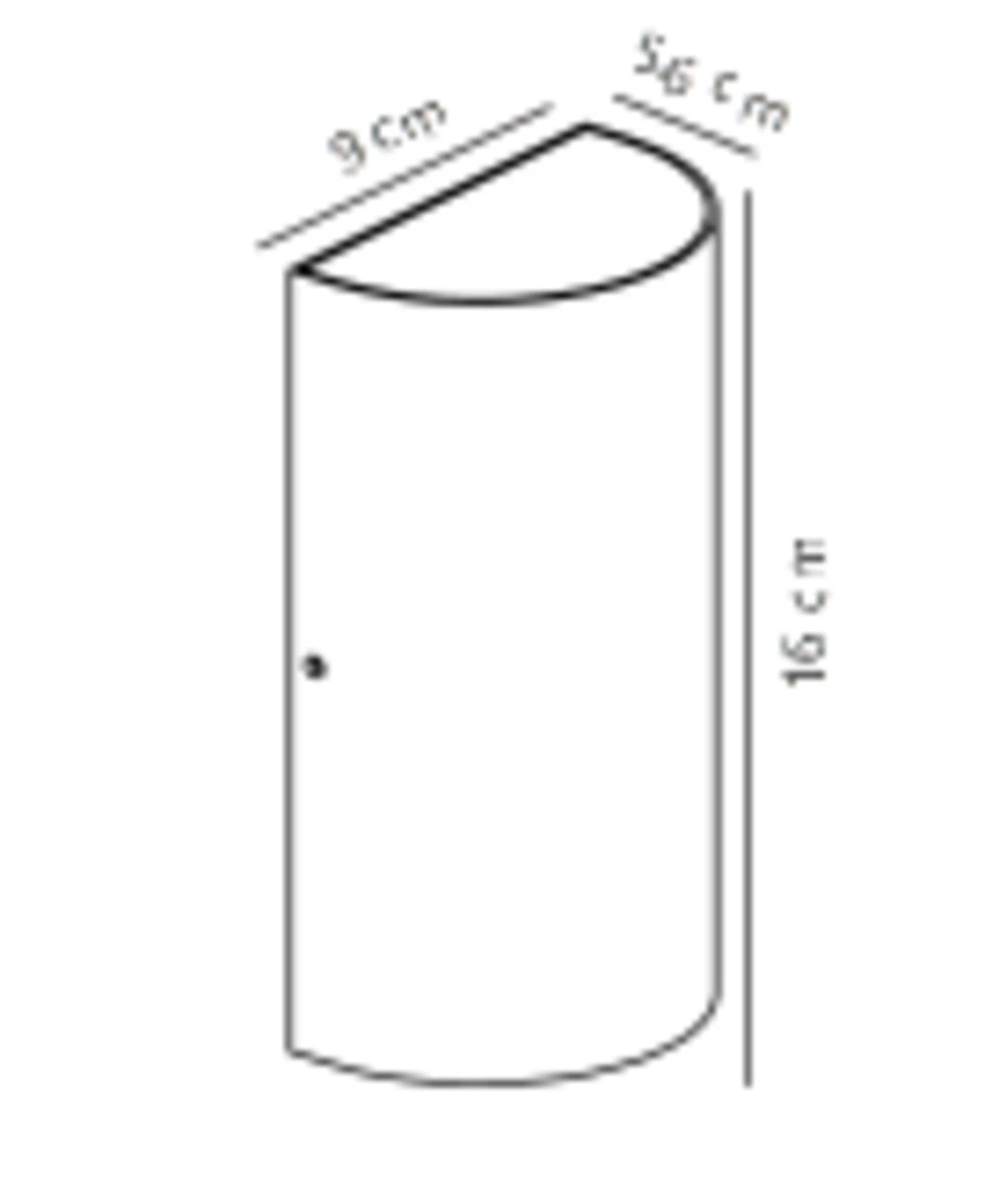 📐 Διαστάσεις: Ύψος 16 cm, Πλάτος 9 cm, Προεξοχή 5.6 cm — συμπαγές αλλά αποτελεσματικό φωτιστικό.
