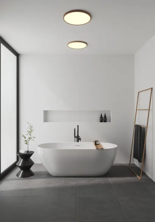 Η λεπτή κατασκευή με διάμετρο περίπου 42.4 cm και πάχος 2.3 cm προσφέρει μια καθαρή, μοντέρνα αισθητική στον χώρο, ενώ το wood foil φινίρισμα προσθέτει μια ζεστή, φυσική πινελιά στη διακόσμηση. Με βαθμό προστασίας IP54, αυτό το φωτιστικό είναι κατάλληλο και για υγρά περιβάλλοντα όπως μπάνια ή κουζίνες, προσφέροντας αξιόπιστο φωτισμό σε κάθε περίσταση.