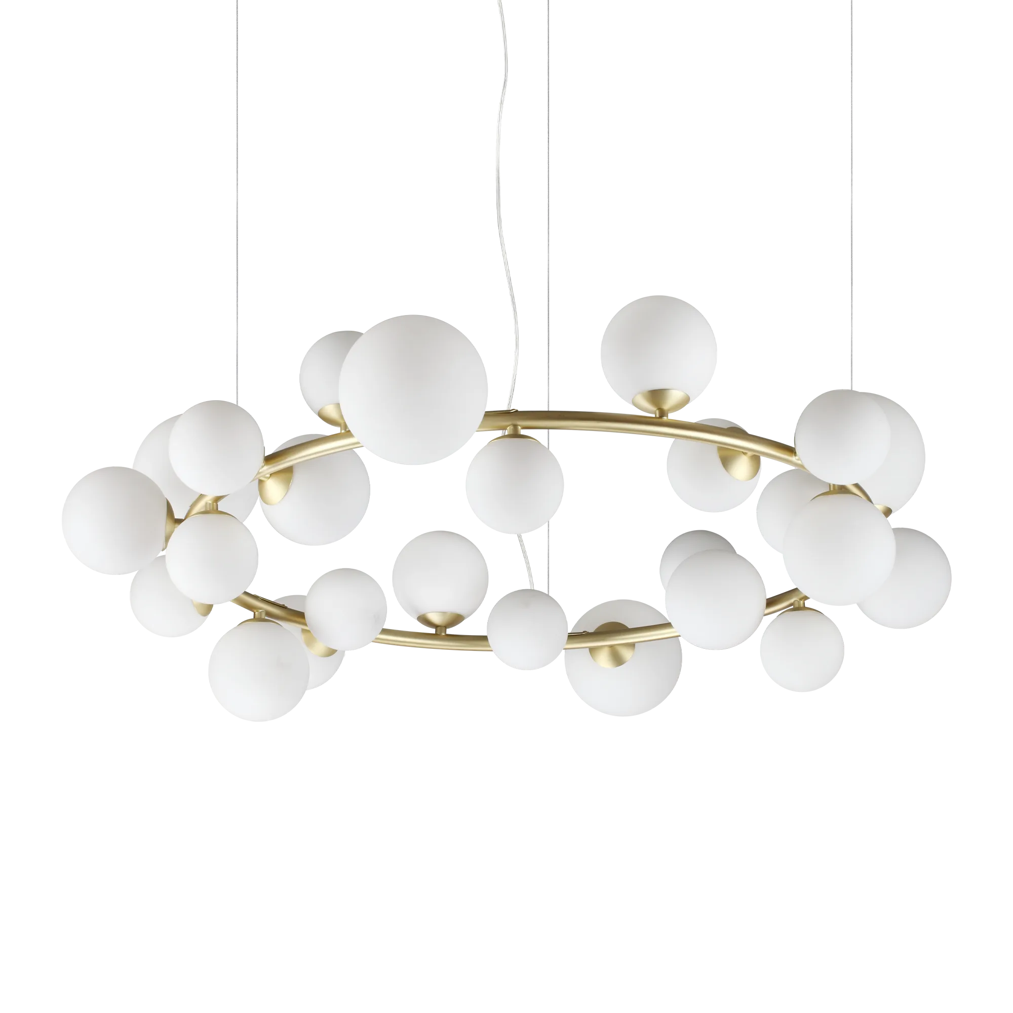 Το IDEAL LUX Perlage SP25 White είναι ένα εντυπωσιακό κρεμαστό πολύφωτο φωτιστικό με 25 γυάλινες σφαίρες σε λευκή απόχρωση, σχεδιασμένο για να προσφέρει πλούσιο και ομοιόμορφο φωτισμό σε μεγάλους εσωτερικούς χώρους. Με 25 υποδοχές G9, εξασφαλίζει υψηλή φωτεινότητα και εντυπωσιακή φωτιστική παρουσία, ιδανική για χώρους όπου ο φωτισμός αποτελεί βασικό στοιχείο διακόσμησης.