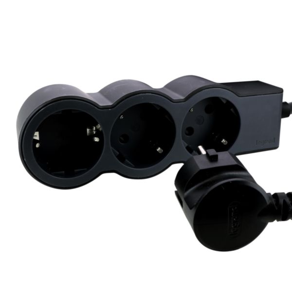 Πολύπριζο με 3 πρίζες ρεύματος 2Π+Γ. Μαύρο/Σκούρο Γκρι. Σχεδιασμός και ποιότητα Legrand France.