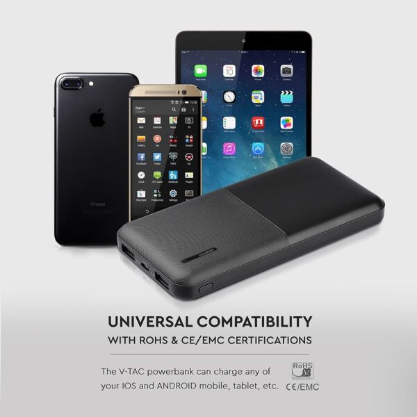 Power Bank 10000mAh με 2 Θύρες USB Μαύρο V-TAC – 8897