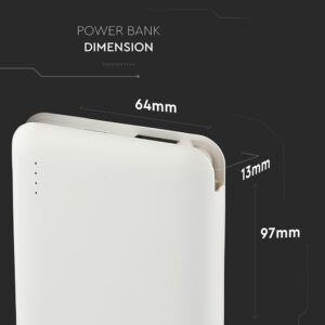 Power Bank 5000mAh Λευκό V-TAC με ενσωματωμένο καλώδιο – 8864