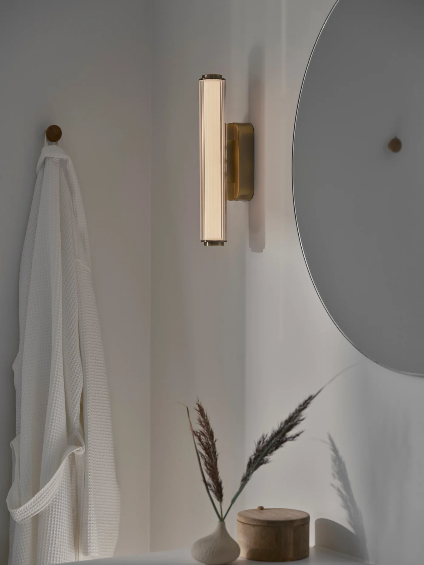 Το Nordlux Virelle 32 Wall Light 2610221035 είναι ένα κομψό και λειτουργικό επιτοίχιο φωτιστικό LED σχεδιασμένο για εσωτερικούς χώρους όπου η ανθεκτικότητα στην υγρασία και η ποιότητα φωτισμού είναι πρωταρχικής σημασίας. Αυτό το φωτιστικό ενσωματώνει LED πηγή φωτός 8 W με φωτεινή ροή περίπου 760 lm, προσφέροντας σταθερό και άνετο φωτισμό για μπάνια, διαδρόμους, τουαλέτες ή οποιοδήποτε χώρο χρειάζεται προστασία IP44.