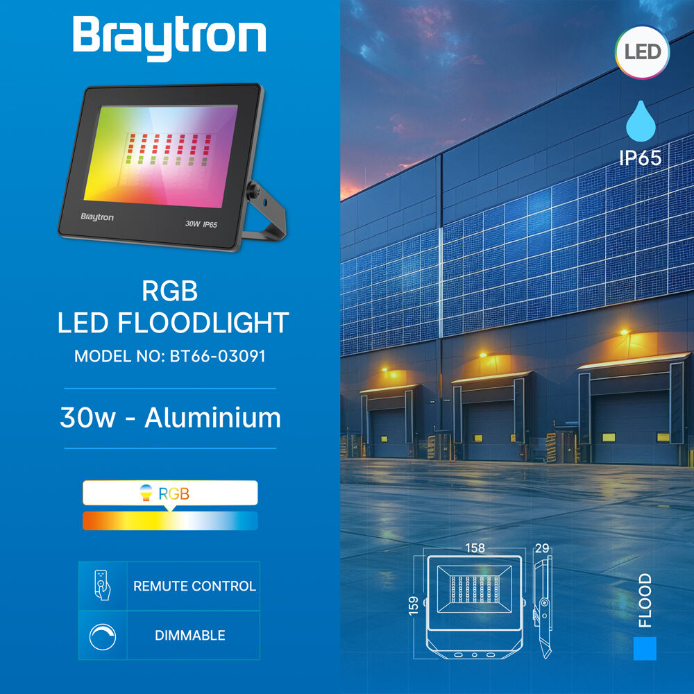 Το BRAYTRON BRY‑FLOOD‑CF‑30W‑BLC‑RGB LED Floodlight είναι ένας πολλαπλών χρήσεων εξωτερικός LED προβολέας με RGB φωτισμό, που προσφέρει πλούσια χρωματική απόδοση για να φωτίζει και να αναδεικνύει εξωτερικούς χώρους με εντυπωσιακά χρωματικά εφέ. Η ισχύς 30 W LED εξασφαλίζει ισχυρό, έντονο φωτισμό, ιδανικό για εκδηλώσεις, διακοσμήσεις, κήπους, fasades & επαγγελματικές εγκαταστάσεις.