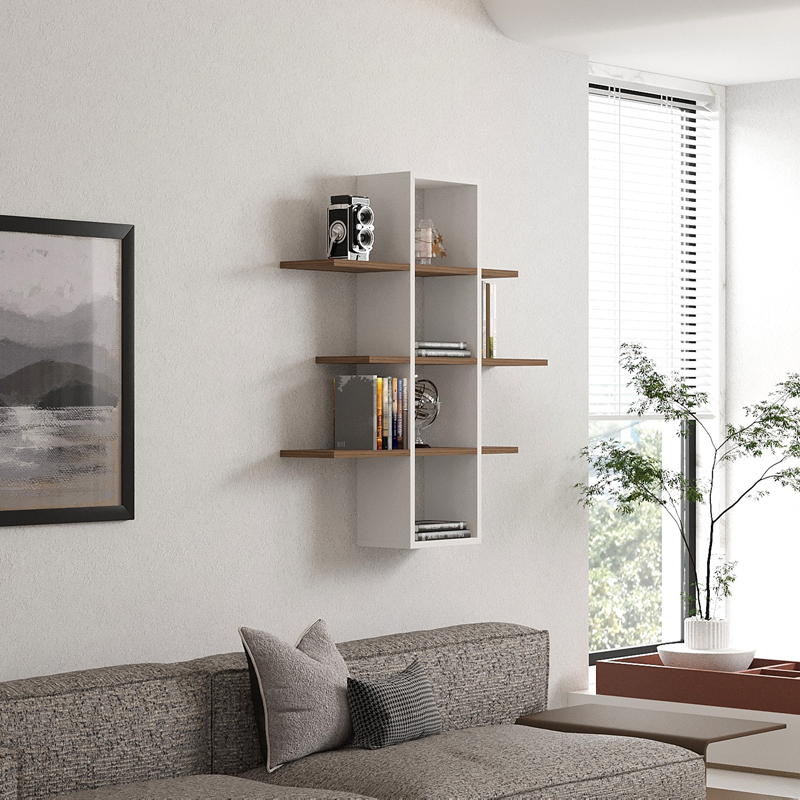 Ραφιέρα τοίχου Akira pakoworld μελαμίνη σε καρυδί-λευκή απόχρωση 96×19.5×101εκ – 120-000448