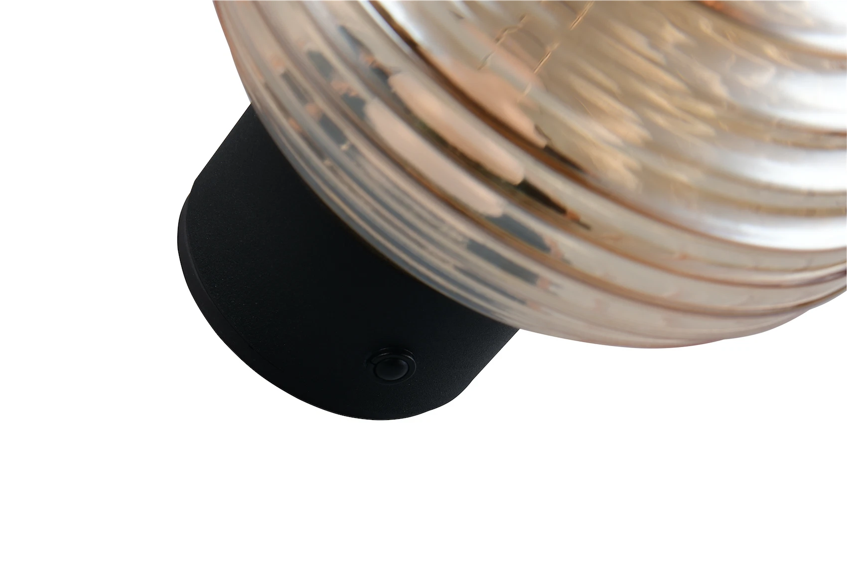 Επαναφορτιζόμενο Φωτιστικό Τοίχου LED Reality EARL Μαύρο Ματ με Μελί Γυαλί Dimmable 1.5W 140lm 3000K – R27771113