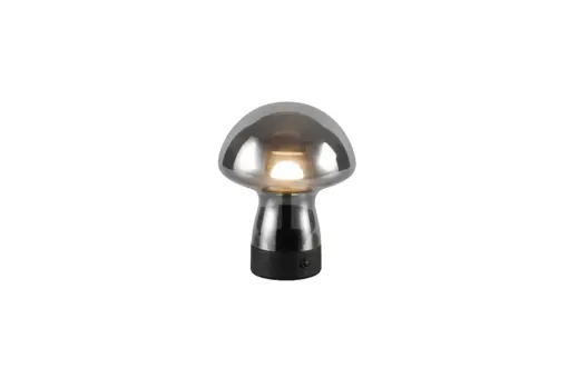 Το DOOLEY της TRIO Lighting είναι ένα σύγχρονο, φορητό επιτραπέζιο φωτιστικό LED που συνδυάζει την κομψή, γλυπτή σχεδίαση με την πρακτική λειτουργικότητα. Το χαρακτηριστικό του σχήμα μανιταριού (mushroom-shaped) από γυαλί, μαζί με το φινίρισμα Smoked Glass (καπνιστό γκρι), προσδίδει μια απαλή, ατμοσφαιρική λάμψη, ιδανική για κάθε γωνιά του σπιτιού ή του επαγγελματικού χώρου.