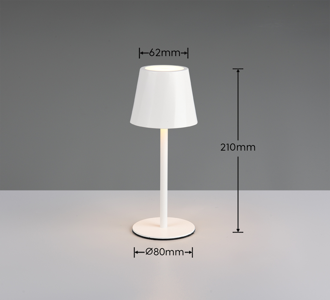 Το Trio Lighting Diaz R55961131 είναι ένα φορητό, επαναφορτιζόμενο LED φωτιστικό που συνδυάζει λειτουργικότητα, ευελιξία και στιλ σε ένα compact design. Με έντονα αλλά εξοικονόμο φωτιστικά χαρακτηριστικά, αυτό το φωτιστικό παράγει περίπου 160 lumens και σου δίνει τη δυνατότητα να ρυθμίζεις τη θερμοκρασία φωτός από θερμό έως ψυχρό (2700 – 6500 K) ώστε να ταιριάζει στην ατμόσφαιρα που θες να δημιουργήσεις — από χαλαρωτικό περιβάλλον μέχρι λειτουργικό φωτισμό.