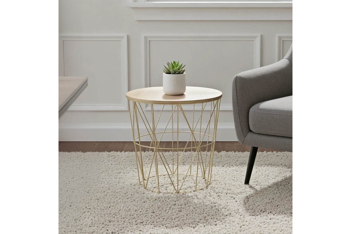 Τραπέζι σαλονιού Kumi pakoworld oak-χρυσό Φ41×40εκ