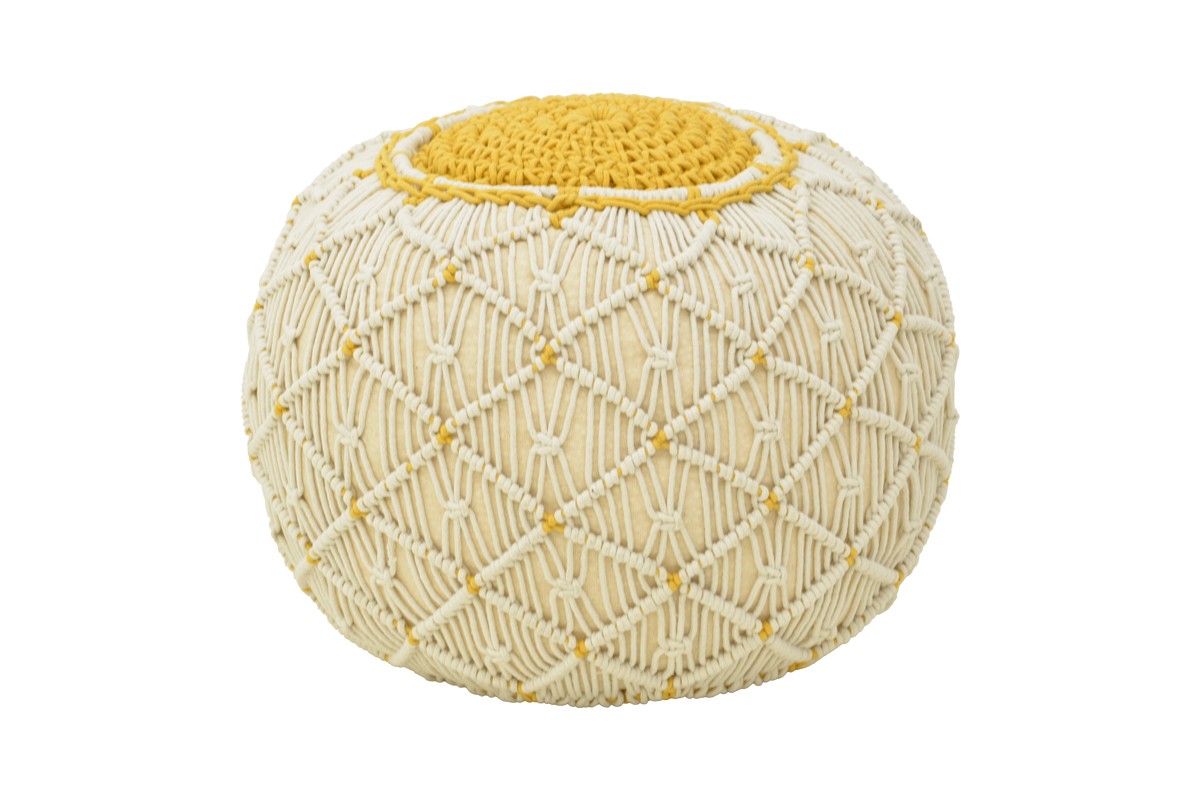 Σκαμπό-πουφ Boha Inart γιούτα σε φυσική και λευκή απόχρωση Φ40×30εκ – 302-000031