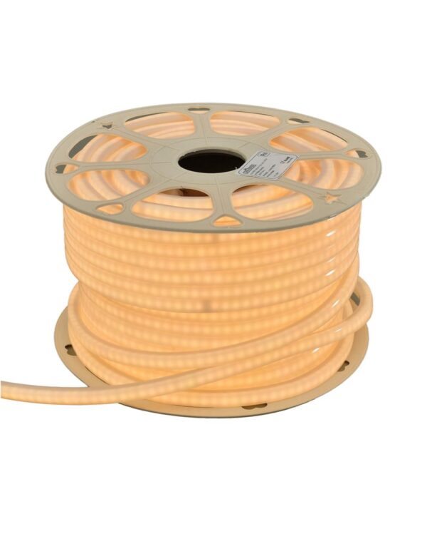 Ταινία LED Square neon flex με τάση τροφοδοσίας 220-240V και ονομαστική ισχύς ανά μέτρο 8W. Η θερμοκρασία χρώματος είναι 3000K. Ο βαθμός στεγανότητας είναι IP65, η γωνια δέσμης 330 μοίρες και η διάρκεια ζωής της ταινία είναι 25000h. Ο τύπος LED είναι SMD2835 και σε κάθε μέτρο υπάρχουν 120 LED. Τα σημεία κοψίματος της ταινίας βρίσκονται κάθε 1 μέτρο και ο τρόπος κάμψης της είναι top bending. Το κάθε καρούλι διαθέτει 50 μέτρα ταινίας.