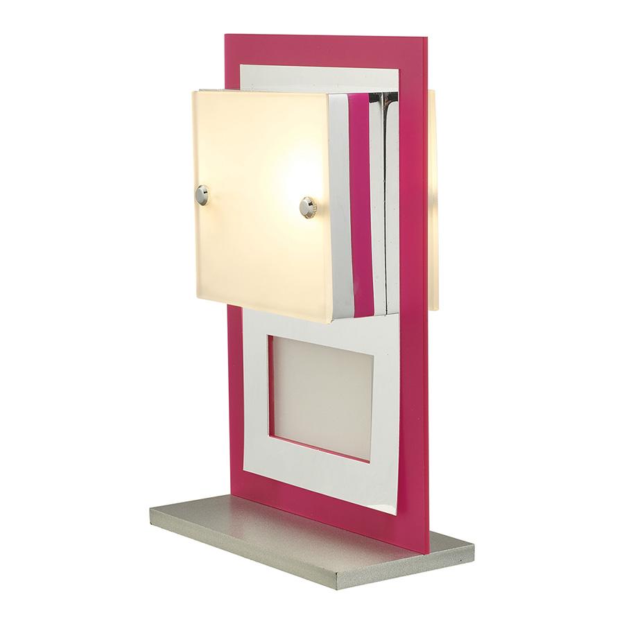 Επιτραπέζιο φωτιστικό (μονόφωτο πορτατίφ), με βάση από χρώμιο και πλαίσιο από plexiglass. Ως διακοσμητικά στοιχεία έχει τετράγωνα γυαλιά αμμοβολής εκατέρωθεν του πλαισίου. Υψος: 24 εκ.Μήκος: 15 εκ.Πλάτος: 8 εκ.Λαμπτήρες: 1 τεμ.Τύπος Λαμπτήρα: G9Watt: 40