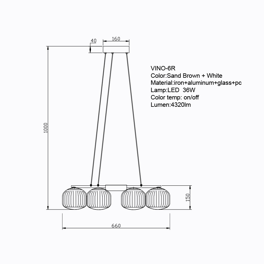 Κρεμαστό 6φωτο φωτιστικό οροφής σε χρώμα Sand Brown και opal γυαλιά.Ύψος: 150 εκ.Διάμετρος: 66 εκ.Τύπος Λαμπτήρα: LedWatt: 36WLumen: 4320 lmΘερμοκρασία Χρώματος: 3000KDimmable: Όχι