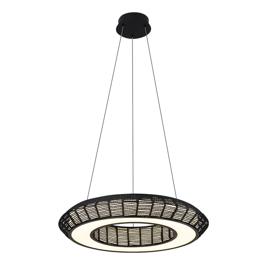 Πολύφωτο κρεμαστό φωτιστικό μονός κύκλος LED κατασκευασμένο από μέταλλο και paper fest σε χρώμα μαύρο.Ύψος: 120εκ.Διάμετρος: 58 εκ.Τύπος Λαμπτήρα: LEDWatt: Max. 64WLumen: 2400LmΘερμοκρασία Χρώματος: CCT, CRI>80Dimmable: Ναι (Remote Control)