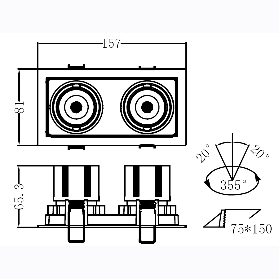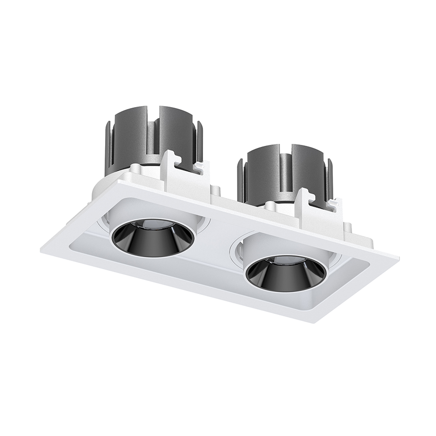 Φωτιστικό διπλό σποτ χωνευτό σε άσπρο χρώμα με μαύρο ανακλαστήρα.