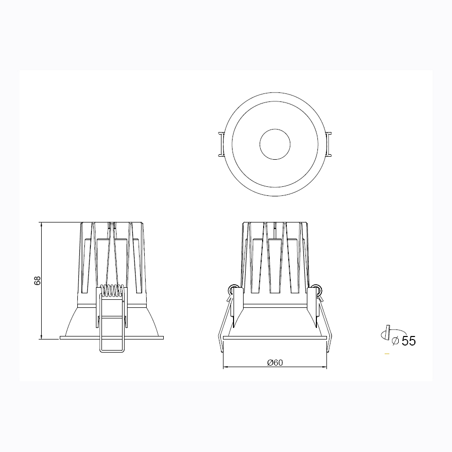 Φωτιστικό σποτ χωνευτό σε γκρι χρώμα με λευκό δαχτυλίδι και μαύρο ανακλαστήρα.