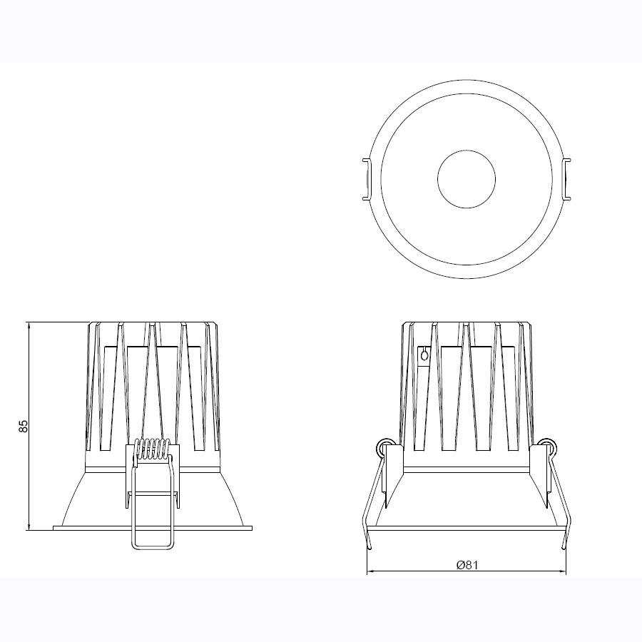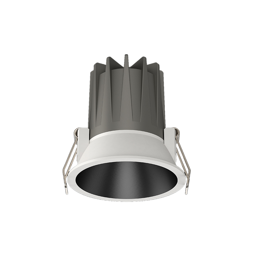 Φωτιστικό σποτ χωνευτό σε γκρι χρώμα με λευκό δαχτυλίδι και μαύρο ανακλαστήρα.