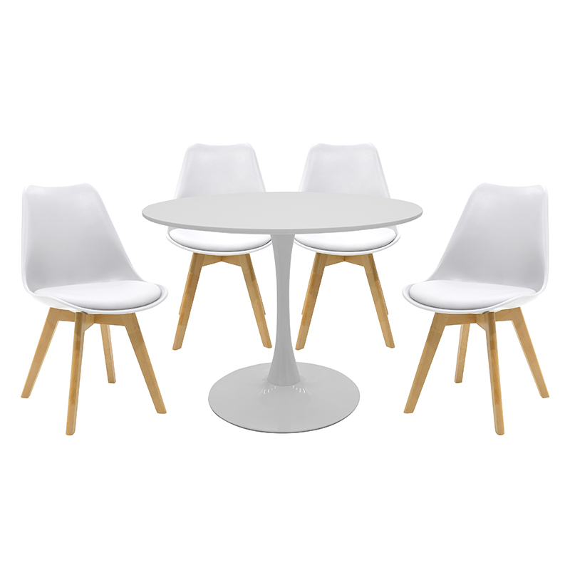 Τραπεζαρία Balou-Gaston σετ 5τεμ pakoworld MDF και pp σε λευκή-φυσική απόχρωση Φ100×75εκ – 200-000472