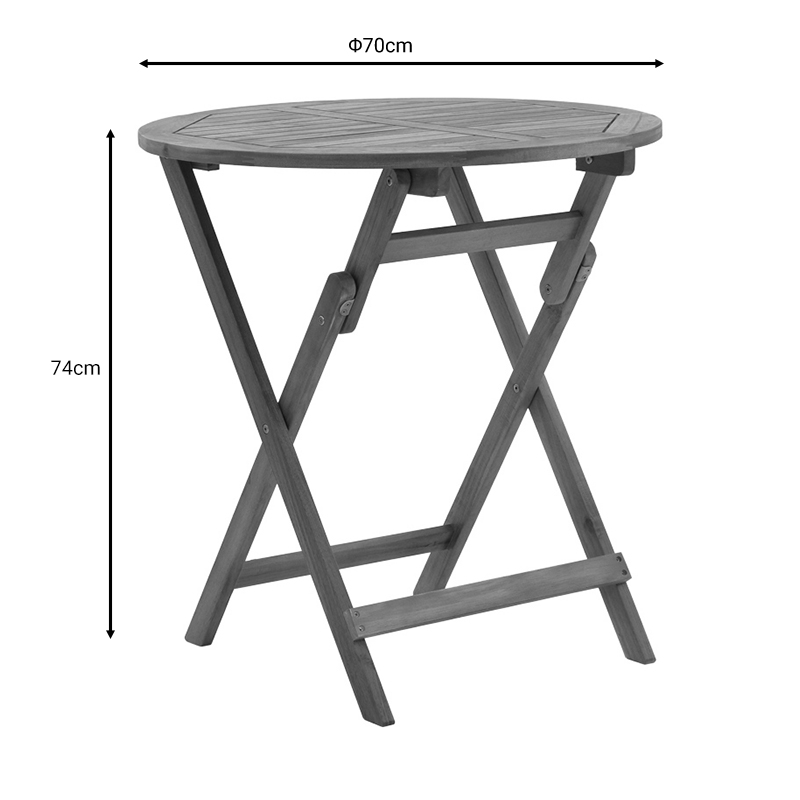 Τραπεζαρία Bistrual-Carpuva pakoworld σετ 3τεμ πτυσσόμενο φυσικό μασίφ ξύλο ακακίας Φ70×74εκ – 282-000056