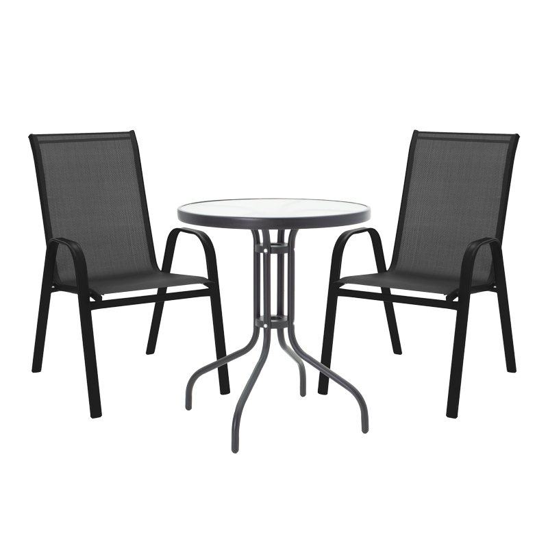 Τραπεζαρία Calan-Watson σετ 3τεμ pakoworld μέταλλο μαύρο-textilene μαύρο Φ60×70εκ – 200-000305