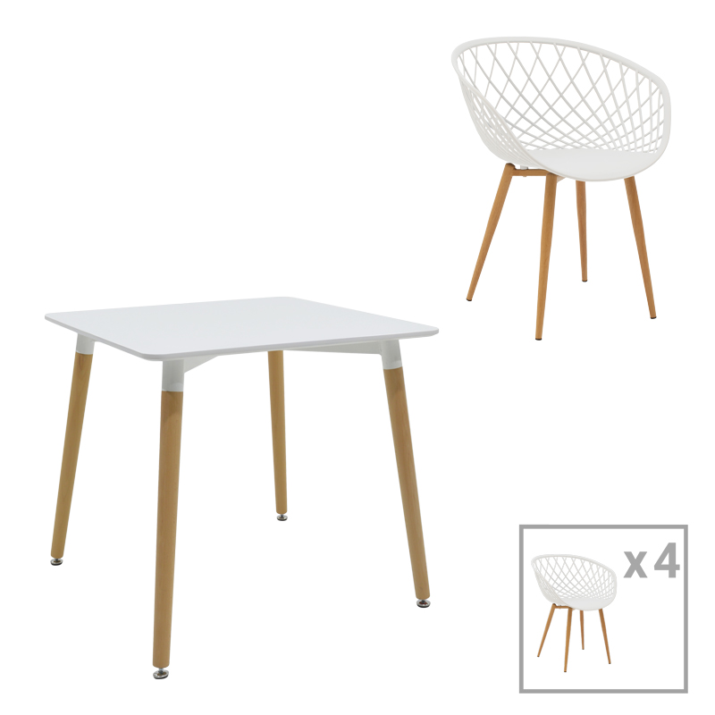 Τραπεζαρία Ezra-Natali pakoworld σετ 5τεμ pp-mdf σε λευκή-φυσική απόχρωση 80x80x76εκ – 200-000993
