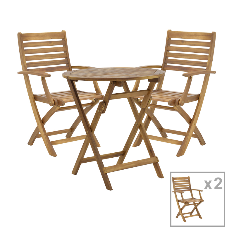 Τραπεζαρία Gorpo-Carpuva pakoworld σετ 3τεμ πτυσσόμενο φυσικό μασίφ ξύλο ακακίας Φ70×74εκΑναζητάτε μία ανθεκτική τραπεζαρία για το μπαλκόνι ή τον κήπο σας που θα αναβαθμίσει αισθητικά το χώρο σας; Τότε η επιλογή της Gorpo-Carpuva είναι ιδανική για εσάς καθώς συνδυάζει την αισθητική με την ποιότητα κατασκευής.Το σετ αποτελείται από δύο πολυθρόνες και ένα τραπέζι:Τεχνικά χαρακτηριστικά τραπεζιού: Κατασκευή από ξύλο ακακίας. Η ακακία είναι γνωστή για την αντοχή της και την ιδιαίτερη αισθητική της, κάνοντας τον σκελετό αυτόν ιδανικό για χρήση σε εξωτερικούς χώρους, όπως κήπους, βεράντες ή αυλές. Τα λεία φυσικά ξύλινα φινιρίσματα του αναδεικνύουν τις φυσικές γραμμές και την υφή του ξύλου, προσφέροντας μια αίσθηση αυθεντικότητας και ευχάριστης απλότητας. Πτυσσόμενο: Το τραπέζι αναδιπλώνει και κλείνει με μία κίνηση προσφέροντας έτσι ευκολία στη μεταφορά και την αποθήκευση. Προσφέρεται σε χρώμα φυσικό.Διαστάσεις προϊόντος: Μήκος: 70 εκ Πλάτος: 70 εκ Ύψος: 74 εκΣυντήρηση: Για τη συντήρησή του, συνιστάται καθαρισμός με σαπούνι και νερό, καθώς και η τακτική εφαρμογή προϊόντων προστασίας ξύλου για να διατηρηθεί η φυσική του όψη και ανθεκτικότηταΤεχνικά χαρακτηριστικά πολυθρόνας: Κατασκευή από ξύλο ακακίας. Η ακακία είναι γνωστή για την αντοχή της και την ιδιαίτερη αισθητική της, κάνοντας τον σκελετό αυτόν ιδανικό για χρήση σε εξωτερικούς χώρους, όπως κήπους, βεράντες ή αυλές. Τα λεία φυσικά ξύλινα φινιρίσματα του αναδεικνύουν τις φυσικές γραμμές και την υφή του ξύλου, προσφέροντας μια αίσθηση αυθεντικότητας και ευχάριστης απλότητας. Πτυσσόμενο κάθισμα: Η καρέκλα αναδιπλώνει και κλείνει με μία κίνηση προσφέροντας έτσι ευκολία στη μεταφορά και την αποθήκευση. Φέρει μπράτσα για την ξεκούραση των χεριών. Προσφέρεται σε χρώμα φυσικό. Διαστάσεις προϊόντος: Μήκος: 57 εκ Πλάτος: 59 εκ Ύψος: 93 εκ Παρατηρήσεις: Το προϊόν παραδίδεται σε εργοστασιακή συσκευασία. Η χρωματική απόχρωση του προϊόντος ενδέχεται να διαφέρει ελαφρώς σε σχέση με την φωτογραφική απεικόνισή του στην οθόνη σας.