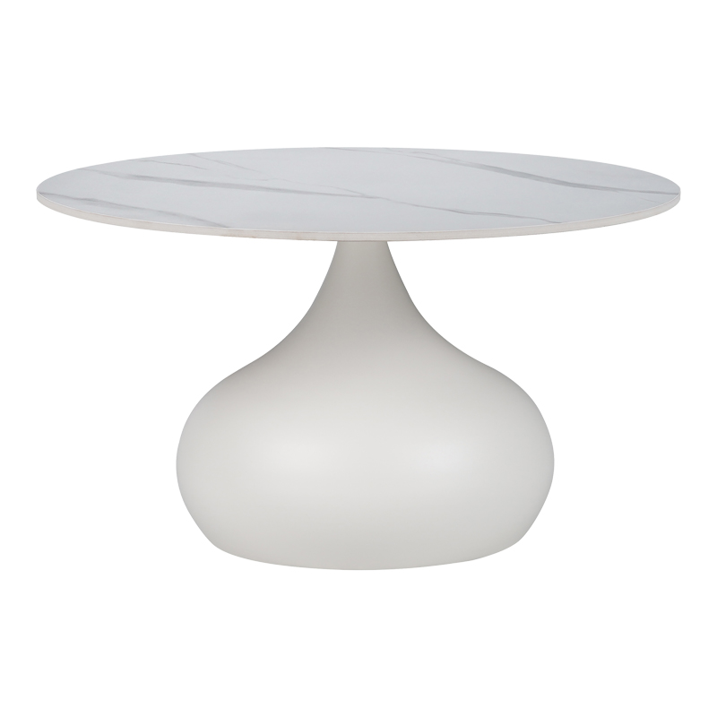 Τραπέζι σαλονιού Kirkene Inart sintered stone σε απόχρωση λευκό μαρμάρου με λευκό μέταλλο Φ70×40εκ – 029-000278