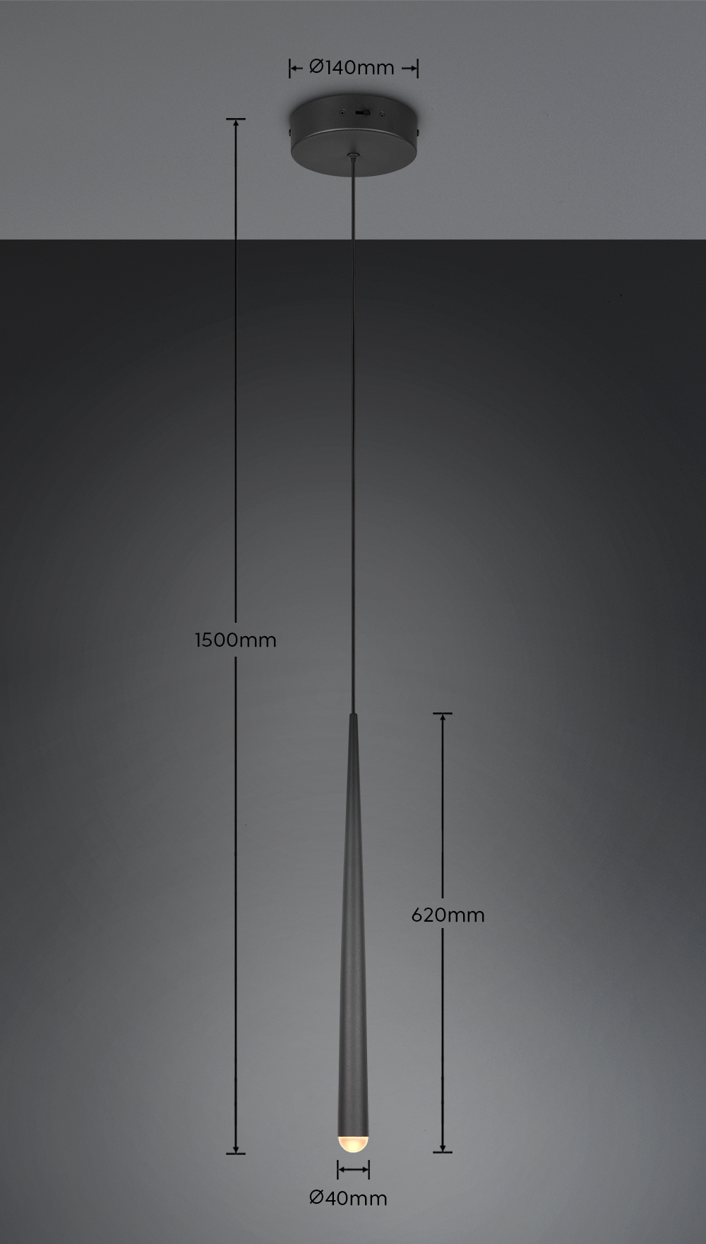 Κρεμαστό φωτιστικό TRIO Lighting CALA 354810132 με ενσωματωμένο LED 5,5 W (~550 lm), επιλογή θερμοκρασίας φωτός 2300 K / 3000 K / 4000 K, switch dimmer και ρυθμιζόμενο ύψος — ιδανικό για σαλόνι, τραπεζαρία ή πάγκο κουζίνας.
