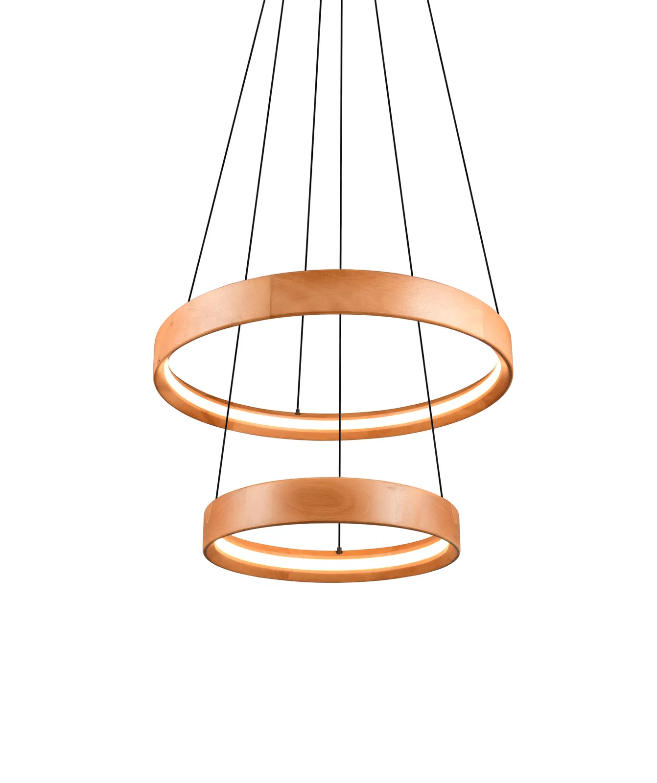 Κρεμαστό Πολύφωτο LED με 2 Κύκλους Φυσικό Ξύλο Φ60 Trio Lighting LED 37W 4300lm Step Dimmable – 355039130