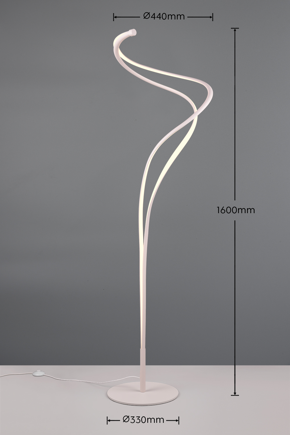 Το ενσωματωμένο dimmer με ποδοδιακόπτη επιτρέπει εύκολο άναμμα, σβήσιμο και αυξομείωση της έντασης του φωτός, ενώ η λειτουργία μνήμης αποθηκεύει την τελευταία ρύθμιση για μεγαλύτερη άνεση. Το φωτιστικό προορίζεται για εσωτερική χρήση (IP20) και λειτουργεί απευθείας σε τάση 230V.