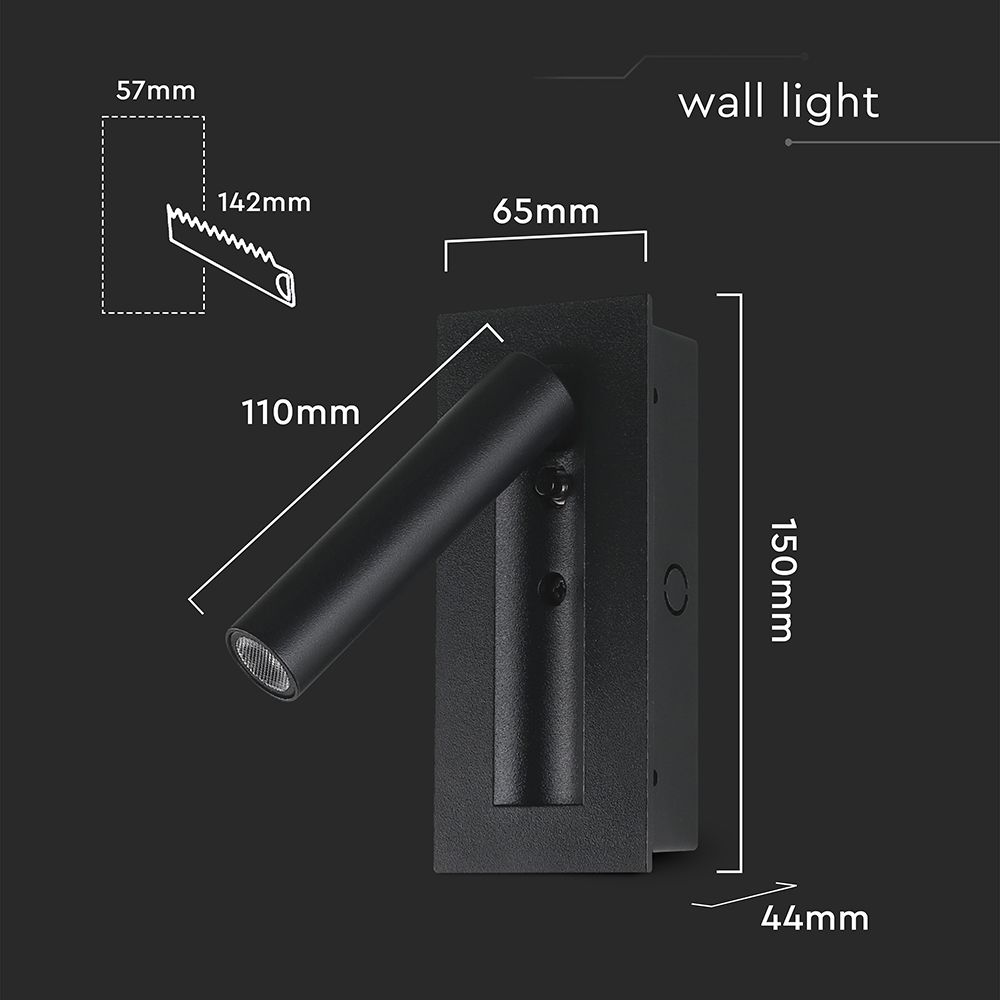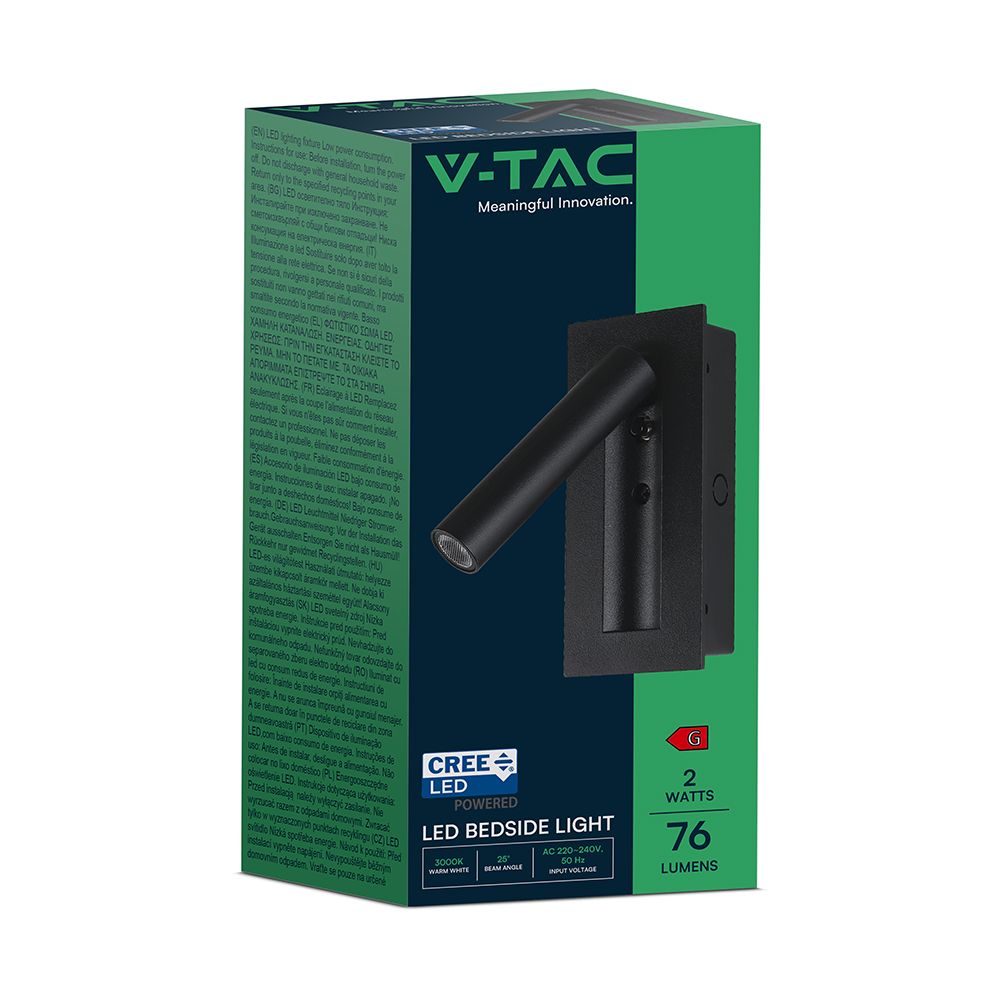 V-TAC – 239996 Χωνευτό Φωτιστικό Κρεβατιού Τύπου Ξενοδοχείου Μαύρο Cree Chip LED 2W 76lm 3000K